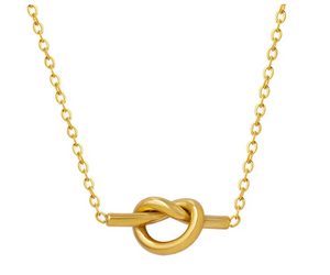This necklace is fashioned from high-quality 18K gold-plated stainless steel, offering a luxurious shine that's both striking and versatile. Whether you’re attending a special event or just enjoying a casual day out, the Love Me Knot Necklace effortlessly complements any outfit with its graceful appeal.