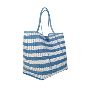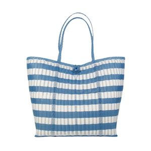 The Lilley Line Large Tote - Lined Paper Striped Baby Blue + White