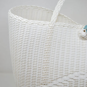 Our medium tote is our bestseller. We love using it every day for grocery, work, school, and weekend hauling. At the grocery, barn, pool, or beach, it stands tall and never collapses. The handles are woven continuously around and through the basket, so they can carry any weight. It’s also the perfect travel bag and looks fabulous at your destination whether that is a beach vacation or a ski resort. Sand dusts through it and snow drain away. The sturdy plastic is washable and will never fade or falter. You will love this forever.