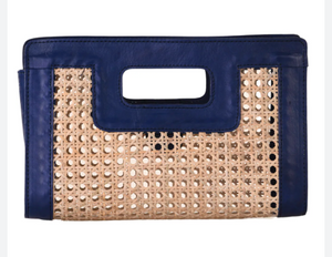 walker & wade Wicker Clutch Navy