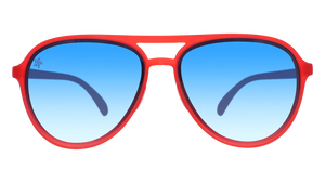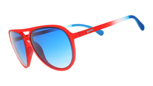 FLOCK YEAH!!! These limited-edition aviators are BACK & ALL IN on America. Bald Eagle's BBQ Heist features translucent red, white & blue Mach G frames with blue gradient lenses. Show up in these shades for winter games & bring home the gold for style. U-S-A?! More like Y-O-U!!!