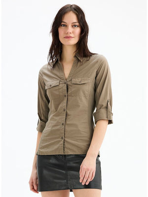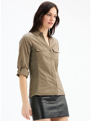 CHRLDR Tracy Poplin Side Rib Button Up - Olive