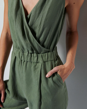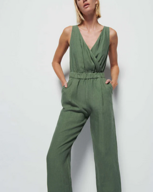 With its chic crossover V neck and easy elastic waist, this linen jumpsuit will be your next obsession. Tie a sweater around your shoulders for a relaxed look at brunch, or layer over a long sleeve when the weather’s colder.