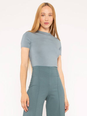 Uber-soft fitted crew neck T-shirt. Made from modal fabric, it stays soft and keeps its shape wear after wear. Length is to the natural waist.