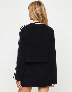 Feel the beat in the Tempo Pullover. Our activewear line just got an upgrade with the addition of this on-trend sweatshirt. A ribbed collar and colorblock detail down the arms gives it a fun and sporty feel. Pull on the matching skirt and sneakers and you'll be ready for a fit check.