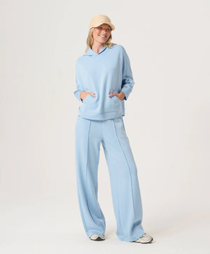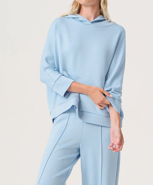 Your new go-to for en route ease. Our Travel Hoodie in Blueberry is made from our signature buttery-soft scuba knit—lightweight, breathable, and irresistibly cozy. The soft sky-blue hue pairs perfectly with our matching Jet Set Pant or your favorite denim. Designed with relaxed ¾ sleeves, a front pocket, and a minimalist hood, it’s ideal for slipping on after a swim or settling in for a long flight. Easy to pack, effortless to wear—this is comfort, curated.