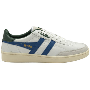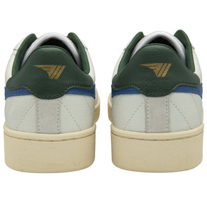 Introducing Contact Leather to the Gola Classics men’s collection. This up-styled cup sole sneaker is inspired by heritage court sports footwear and has a timeless appeal. The contrast evergreen heel tab and sapphire Gola wingflash trim give this new style a classic court look and complement the crisp white leather upper.  Contact Leather is a dependable sneaker choice.