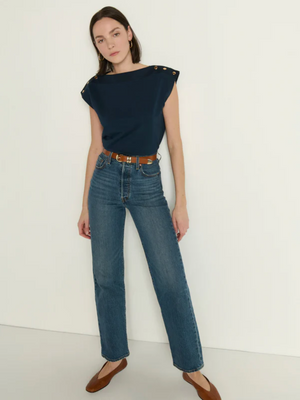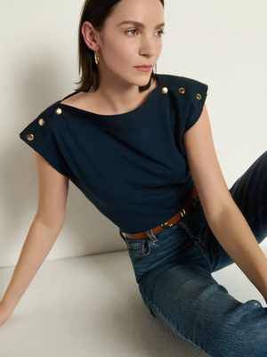 An everyday essential in our 100% cotton heavy slub, this boatneck top features gold-tone snap details along the shoulders. This one comes in Navy Night Sky.