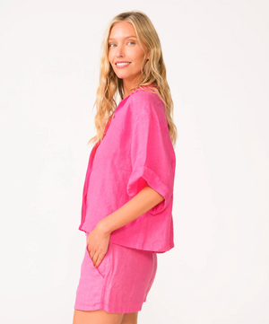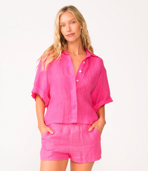 Effortlessly chic and versatile, the Hot Pink Linen Top is a must-have for your wardrobe. Crafted from lightweight white linen, this top features a classic collar and buttons down the front, offering both comfort and style. Perfect for layering or wearing on its own, it pairs perfectly with our Hot Pink Linen Shorts for a coordinated, polished look.