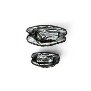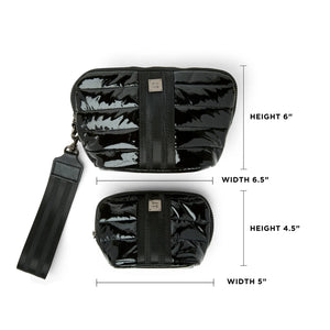 Double your style and organizational power with the Double Stash.  Two perfectly proportioned bags come together to stash your essentials and keep your life in order while staying effortlessly elevated.  Our signature quilting and web collide to create next level sporty chic.  Both bags are lined with foil for easy wipe cleaning and a structured shape.  The larger bag has a detachable web handle creates an easy grab-and-go wristlet.