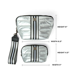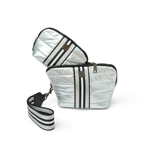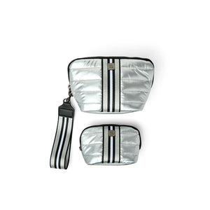 Double your style and organizational power with the Double Stash.  Two perfectly proportioned bags come together to stash your essentials and keep your life in order while staying effortlessly elevated.  Our signature quilting and web collide to create next level sporty chic.  Both bags are lined with foil for easy wipe cleaning and a structured shape.  The larger bag has a detachable web handle creates an easy grab-and-go wristlet.