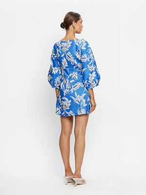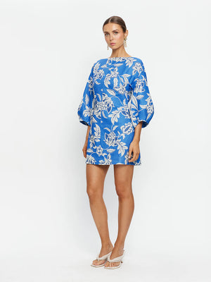 Ren is a vibrant blue print, adorned with crisp white floral motifs that feel both fresh and timeless. The Ren Mini Dress is a modern classic, designed with a soft boat neckline and long sleeves that create an elegant, balanced silhouette. Finished with an invisible zip for a seamless fit, it’s a piece that moves with quiet confidence. Style with heels and a small bag for an understated, effortless look.