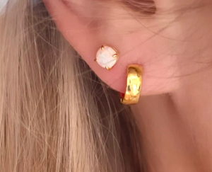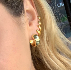 Cute, simple, yet oh so sweet, these new huggies are such a hit! These huggies measure 8MM so they are a sweet and charming little addition to your outfit. 14k gold plated over sterling silver, this pair will not turn/tarnish, and they're hypoallergenic and nickel-free! Great for sensitive ears.