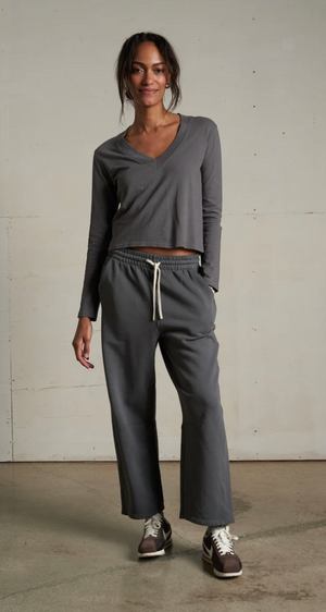 due to popular demand, fiona is our new long sleeve v neck for fall in our signature recycled cotton blend. this fabric was inspired by a vintage shirt we found years ago at the Paris flea market that we've hung onto forever.